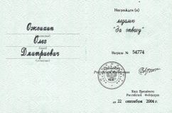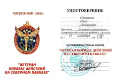 За службу на Кавказе Олег Дмитриевич награждён медалями и нагрудными знаками за отвагу и верность Отечеству.